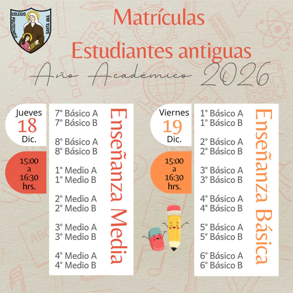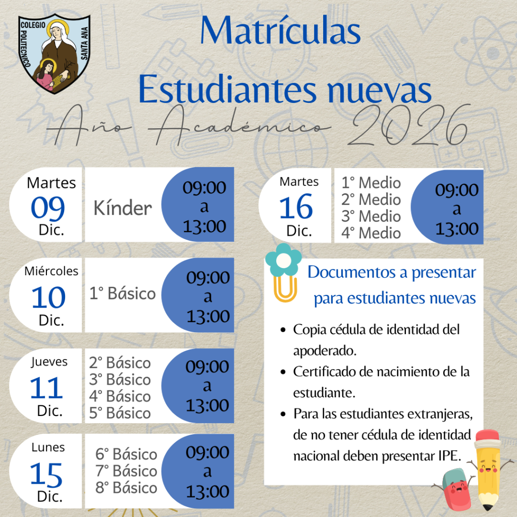 Fechas de Matriculas año académico 2026